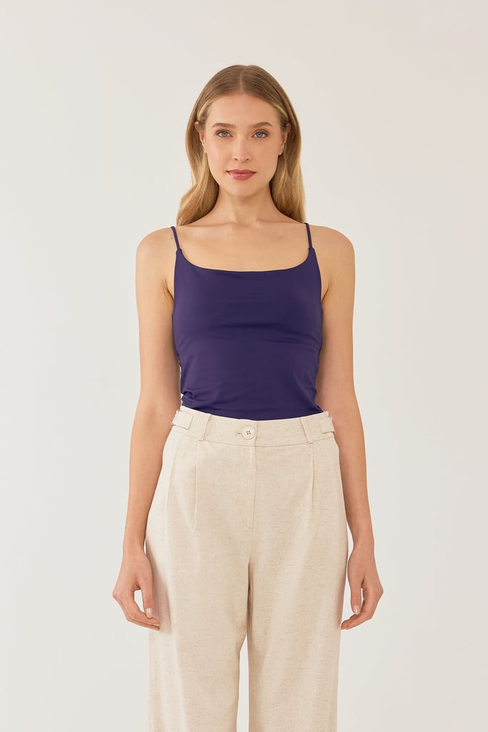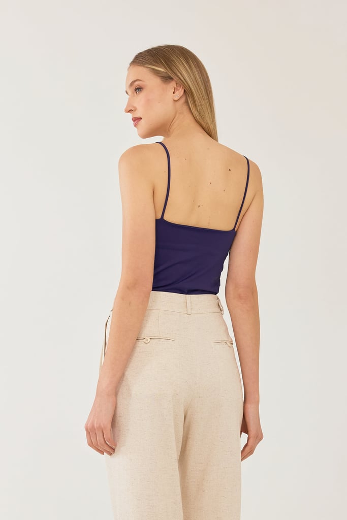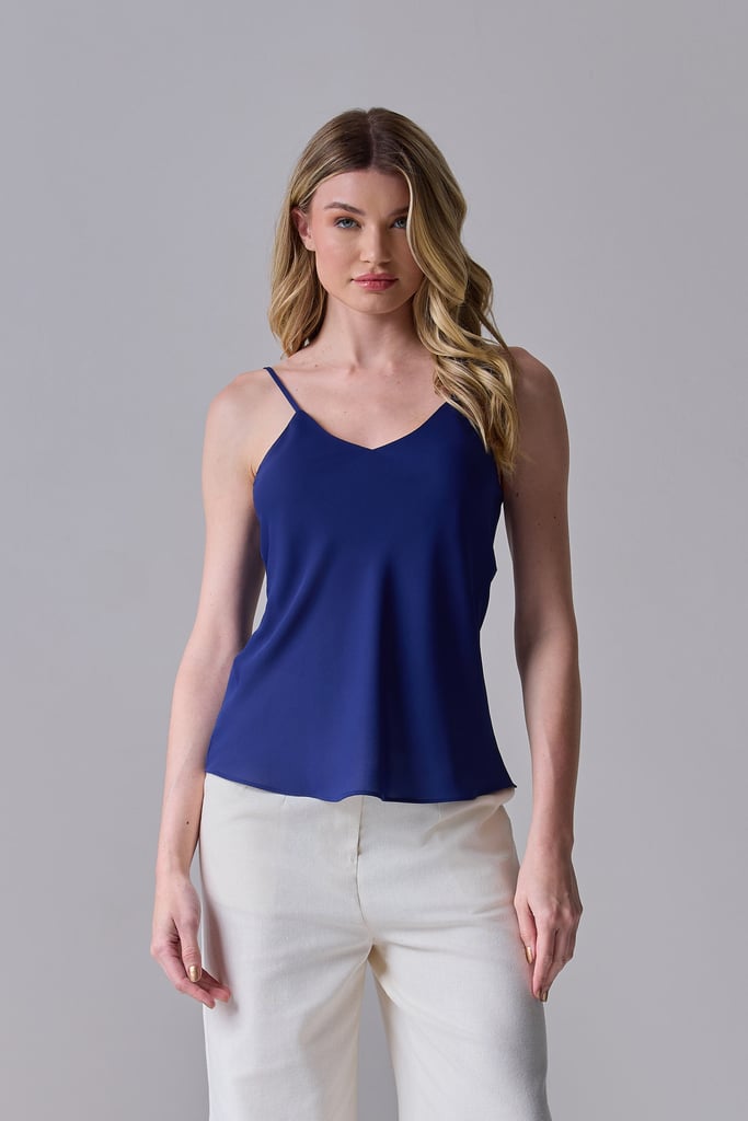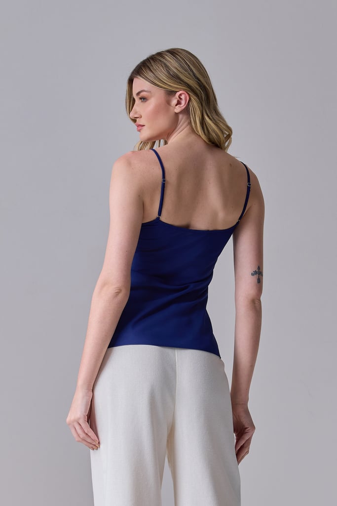Regata Alça Fina Crepe Azul Marinho