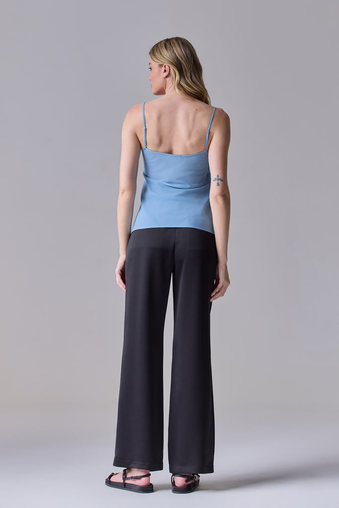 Regata Alça Fina Crepe Azul Claro