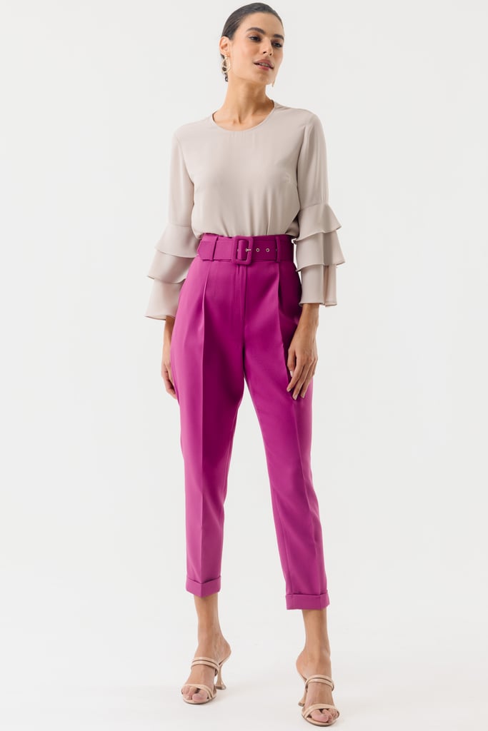 Calça Slim Alfaiataria Pregas Uva