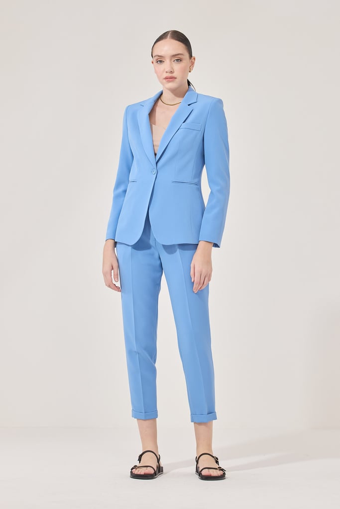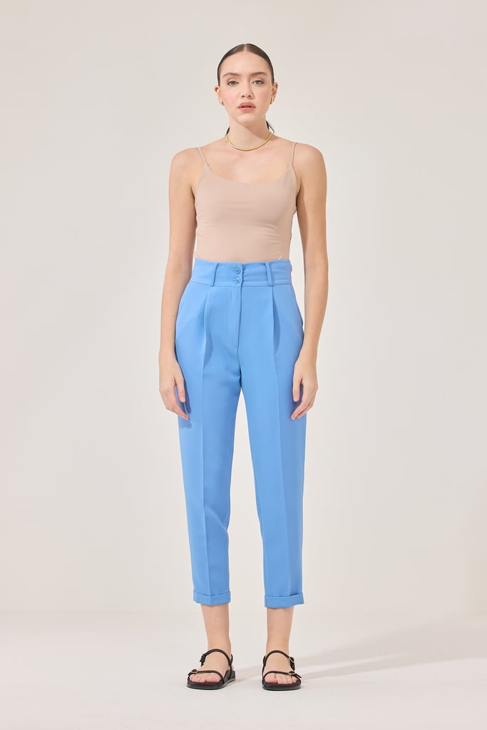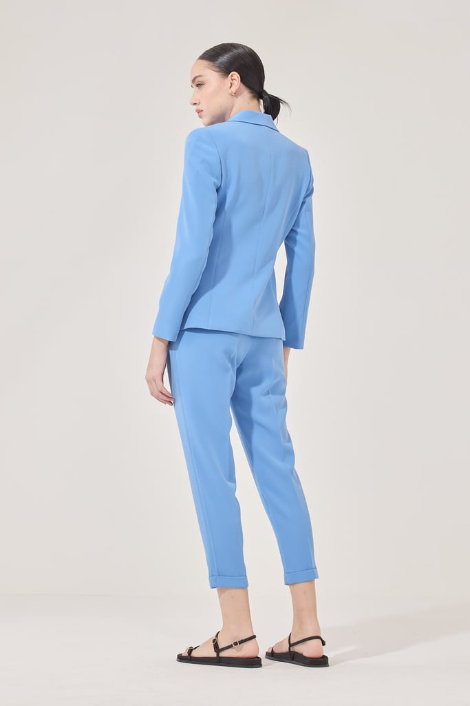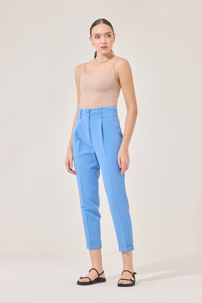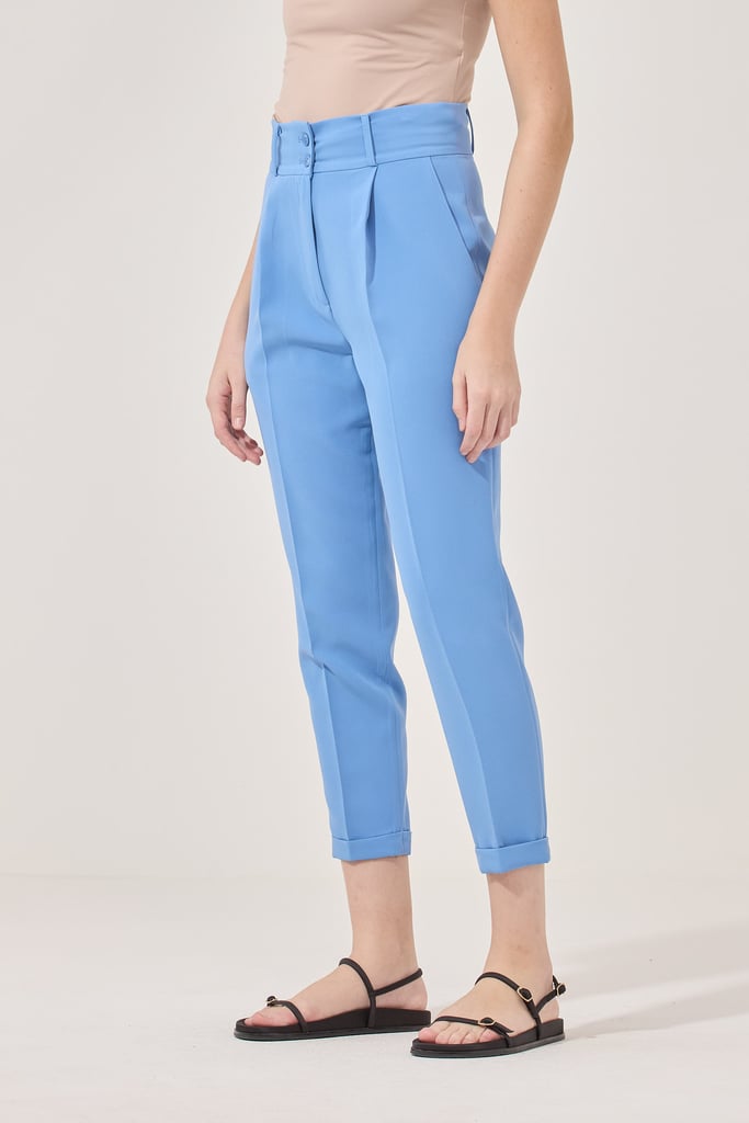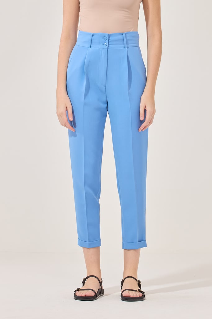 Calça Slim Alfaiataria Pregas Azul Céu