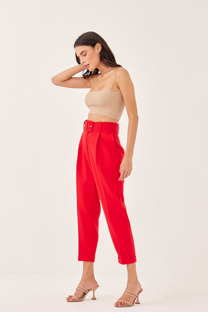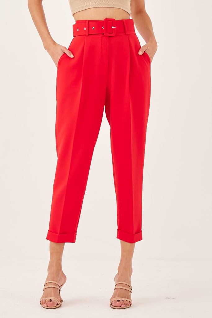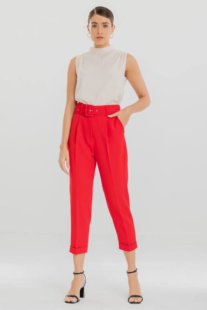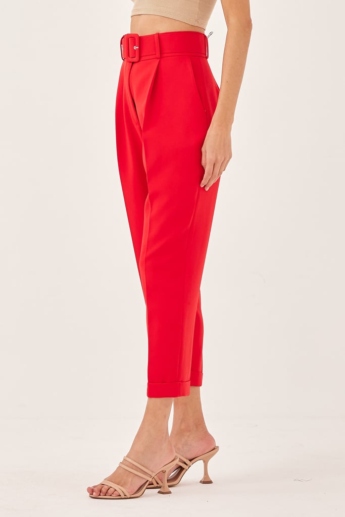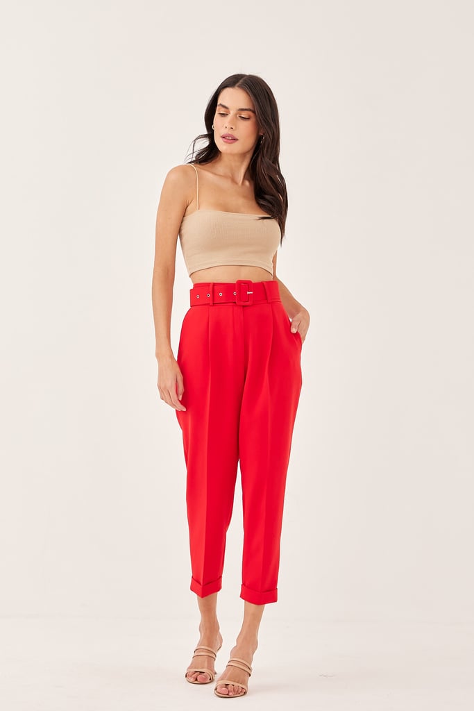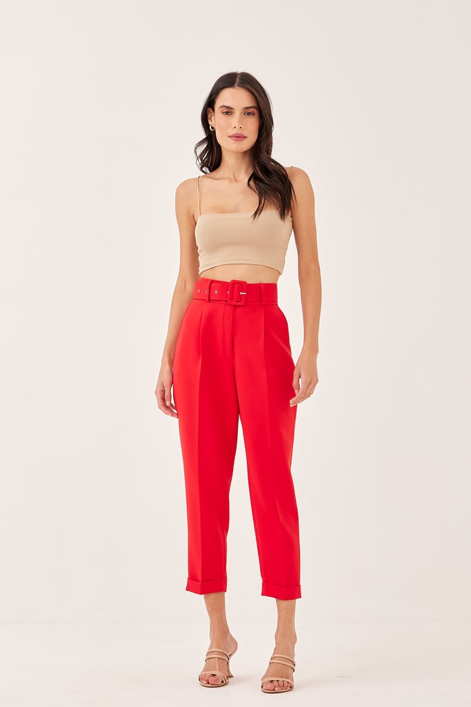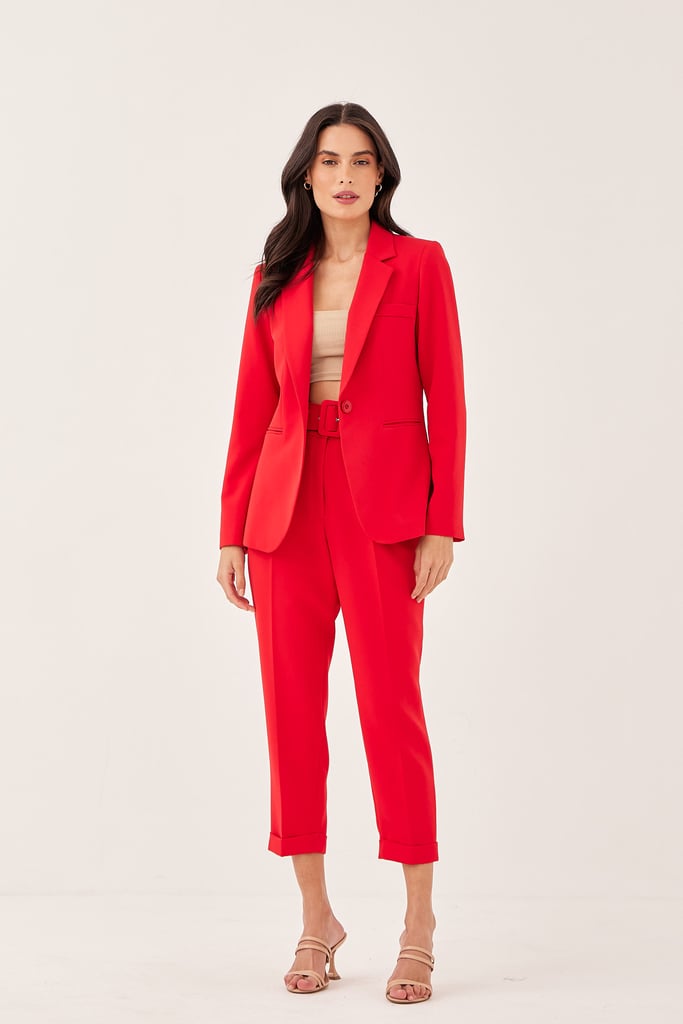 Calça Slim Alfaiataria Pregas Vermelho